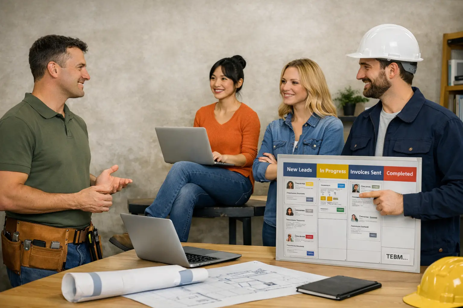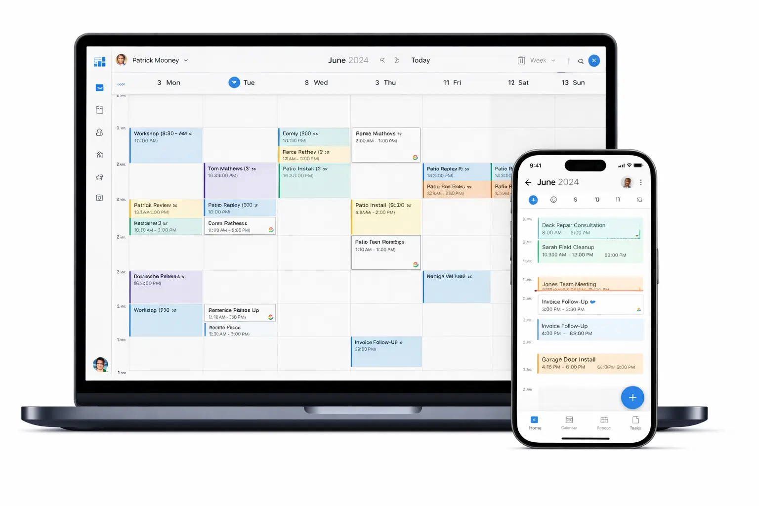One pipeline from lead → estimate → job → invoice, with handoffs and alerts.